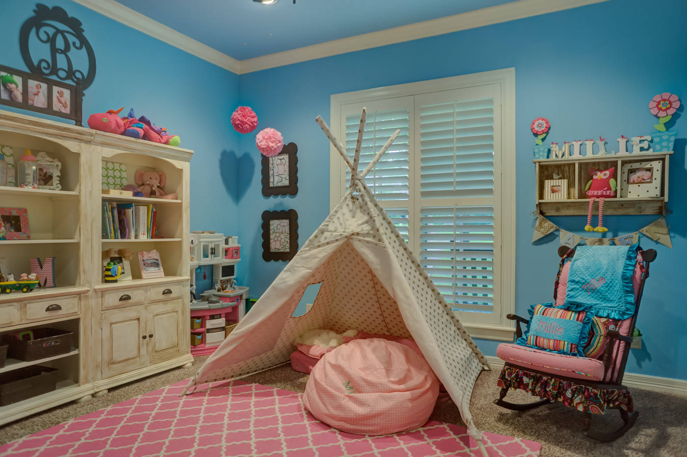 Обычно маленькие дети любят рисовать на стенах. Если малышка еще не переросла этот этап и не начала использовать бумагу, выделите для нее специальный уголок. Наклейте на стену ватман для фломастеров или поставьте большой мольберт. Девочка непременно будет в восторге. Как бы вы ни обустроили игровую зону в детской, не забудьте отвести место, которое будет личным пространством принцессы. Там она сможет уединиться со своими мыслями, заняться любимым делом или просто отдохнуть. Поставьте кресло-качалку или подушку-грушу, маленький диван или пуфик. Учитывайте все пожелания дочери, чтобы ей было комфортно.