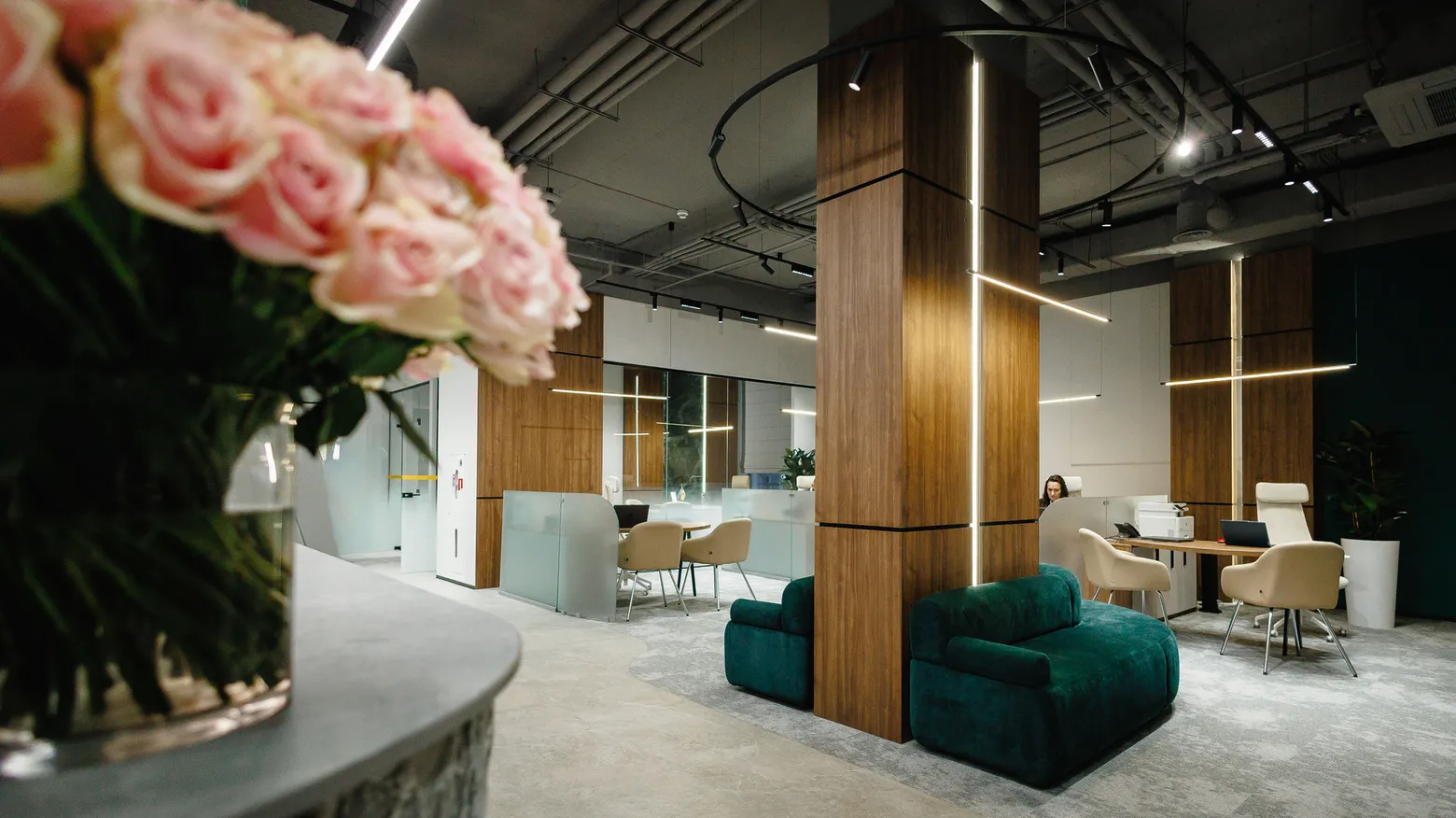 Окремий акцент зроблено на нетворкінгу: простір спроєктовано так, щоб бізнес-клієнти могли проводити тут перемовини, презентації та шукати нових партнерів.