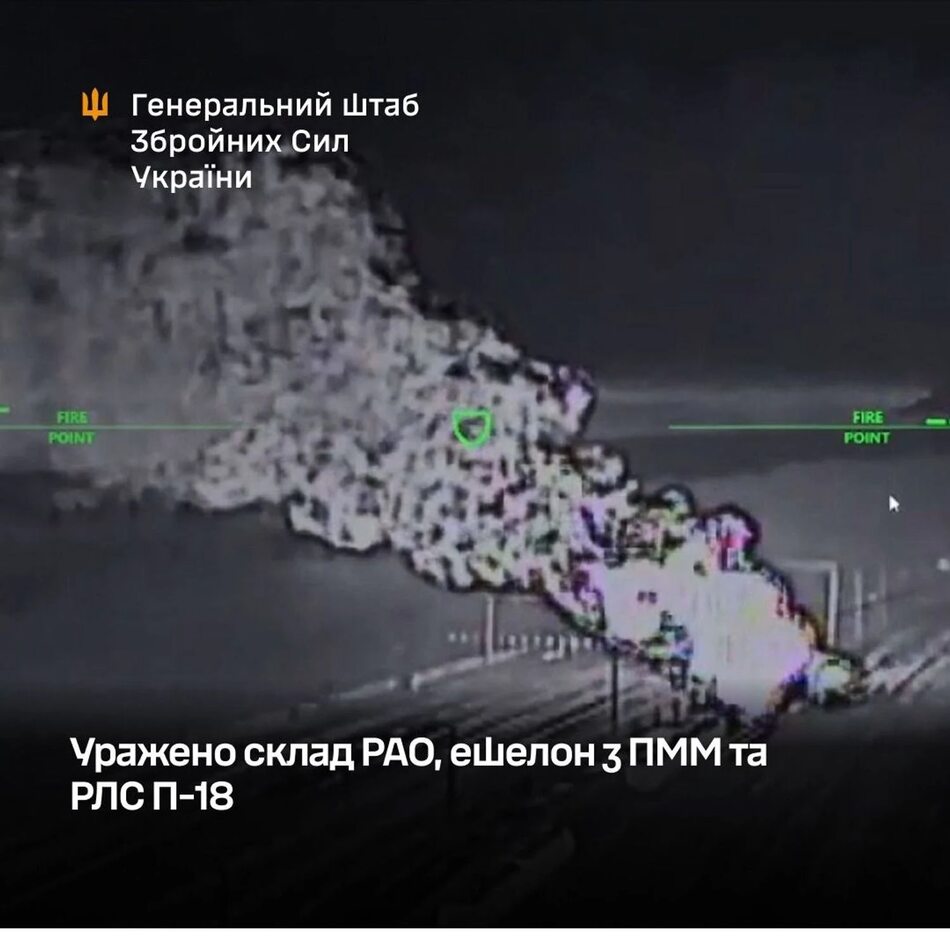 Генеральний штаб ЗСУ підтвердив ураження складу РАО, ешелону з ПММ та РЛС П-18 окупантів, пише УНН.