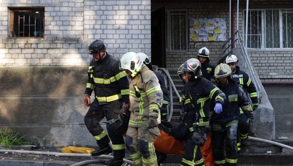 Внаслідок ударів російських БПЛА у ніч на 23 квітня в одному з під’їздів багатоповерхівки в центрі Дніпра повністю знищено оселі з девʼятого по шостий поверхи. Водночас кількість постраждалих зросла до 10 людей.