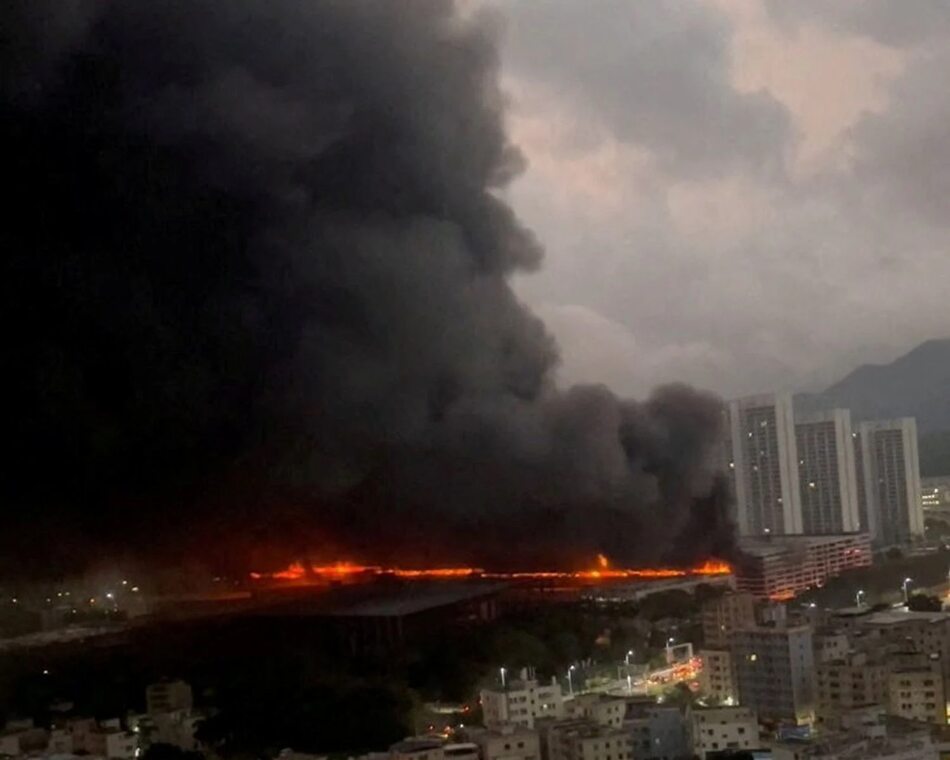 Велика пожежа викликала густий чорний дим, що клубився в небо, а полум’я охопило довгу секцію багатоповерхової будівлі, на місце події були направлені пожежні машини та поліція, як показали відео, створені користувачами, переглянуті та перевірені Reuters.