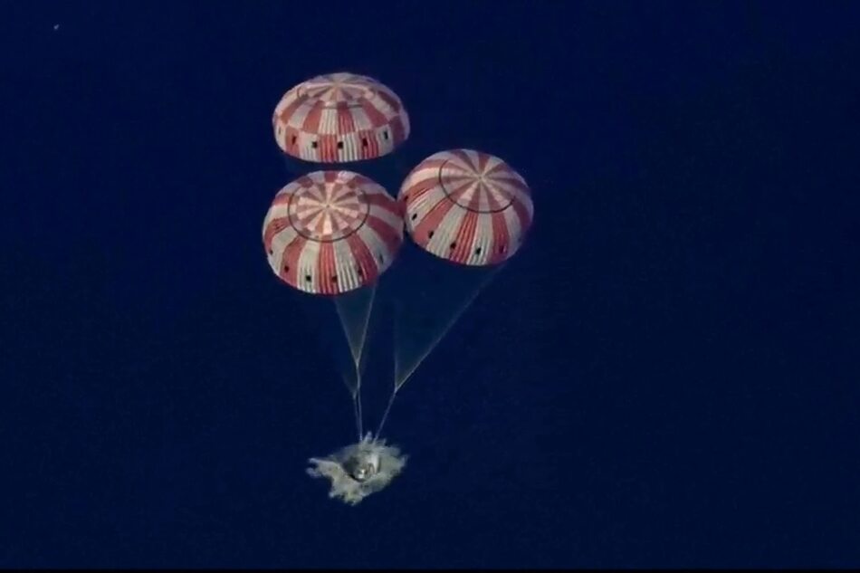 Приводнення відбулося о 03:09 за київським часом біля узбережжя США. Астронавти безпечно повернулися після завершення всіх етапів спуску, включно з входом в атмосферу та розгортанням парашутів.
