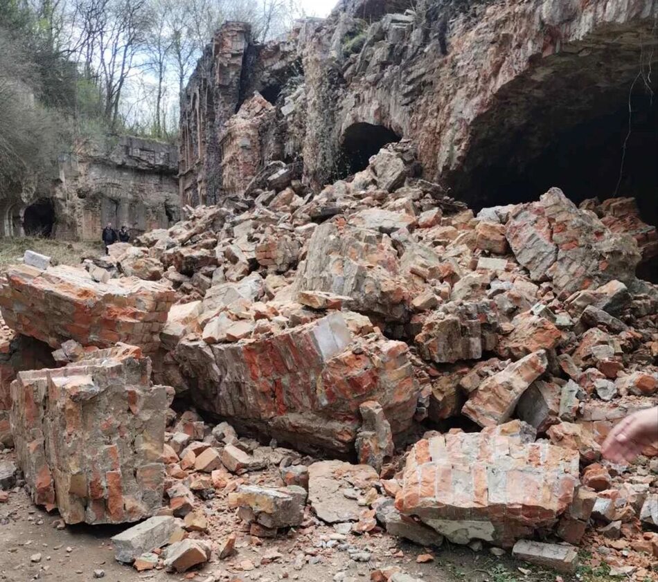 Руйнація частини Центральної казарми Дубенського форту застави (в народі – Тараканівський форт). Фото зроблені 13 квітня 2026 року – йдеться в дописі викладача.