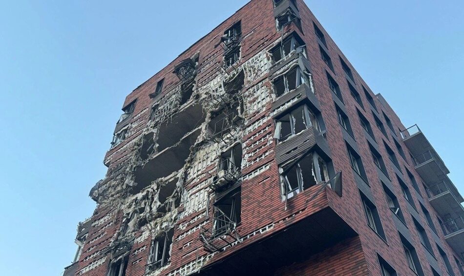 Вночі росіяни атакували саме середмістя Дніпра. Понівечена 9-поверхова новобудова. Досі горить адмінбудівля