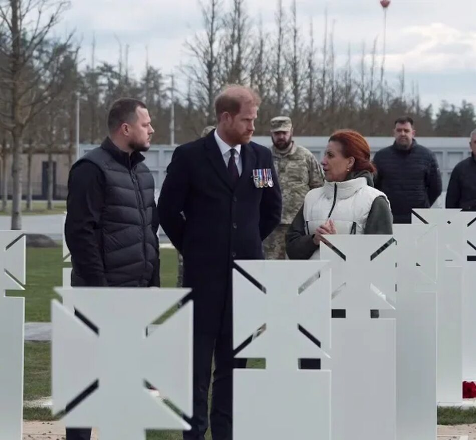 Принц Гаррі відвідав військове кладовище на Київщині разом із представниками влади. Принц Гаррі з міністеркою Наталією Калмиковою та Миколою Калашником відвідав Національне військове меморіальне кладовище. Вони вшанували пам'ять загиблих українських захисників.