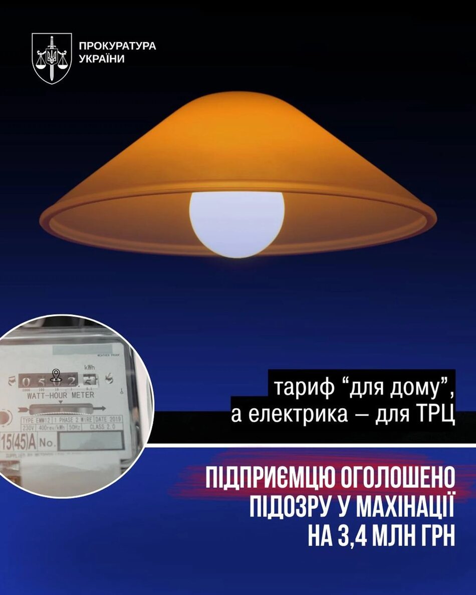 За даними слідства, підприємець оформив споживання електроенергії як для житлового будинку, хоча фактично вона використовувалася для роботи торговельно-розважального центру PLAZA.