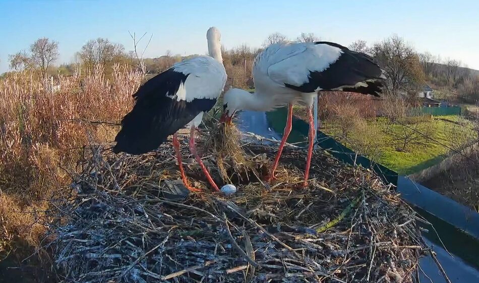 У лелек Грицика та Одарки з'явилося перше яйце у гнізді. Дослідниця Ірина Саражинська підтвердила появу першого яйця у гнізді лелек. За подією в онлайн-трансляції одночасно спостерігали понад 500 глядачів.
