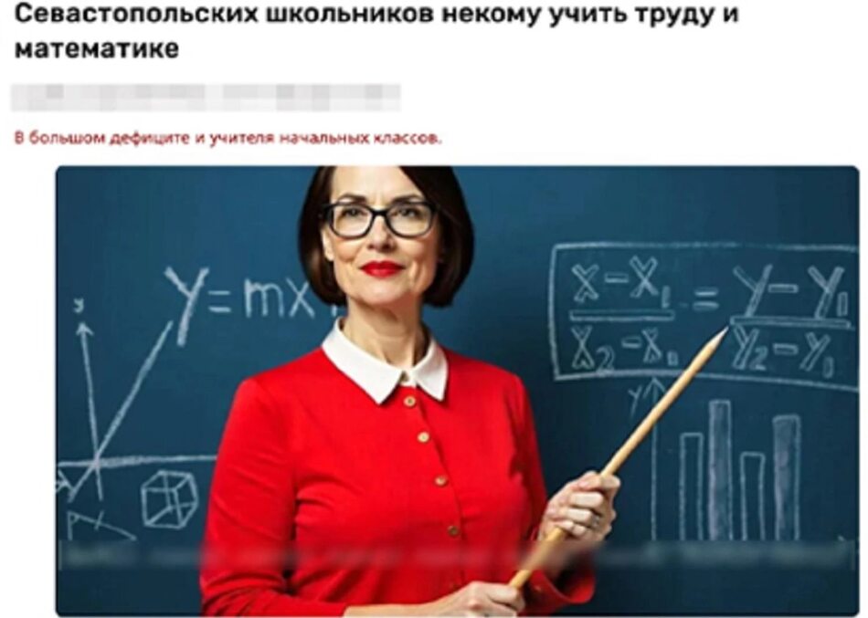 Зазначається, що, зокрема, у Севастополі фіксується постійний дефіцит педагогів: у кожній школі бракує щонайменше кількох учителів, а загальний некомплект по місту сягає понад сотню вакансій. Найбільше не вистачає викладачів базових дисциплін – математики, фізики, початкових класів, а також вчителів праці.