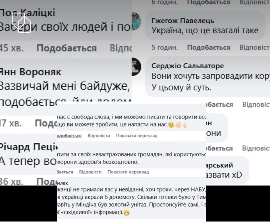 Під удар потрапив допис, у якому дипломати спростовували чергову застарілу антиукраїнську маніпуляцію, що розганяється у польському сегменті соцмереж. Центр стратегічних комунікацій фіксує, що під постом швидко з’явились десятки однотипних коментарів від “псевдополяків”: більшість профілів мають фото, згенеровані ШІ, сторінки порожні або частково заблоковані