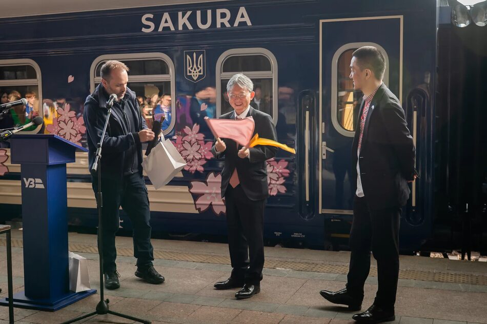 У Мінрозвитку додали, що 12 вагонів поїзда мають брендування пелюстками сакури.