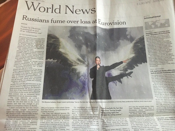 Світова преса продовжує захоплюватися Україною. Так, перша полоса International New York Times присвячена перемозі Джамали на пісенному конкурсі "Євробачення-2016". Американське видання називає це фактором стратегічної перемоги у інформаційній війні.